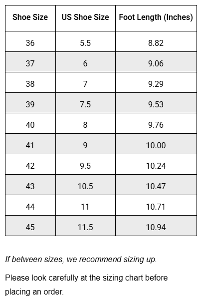 Our sandals are designed to fit true to size. Please see the sizing chart carefully before placing an order.