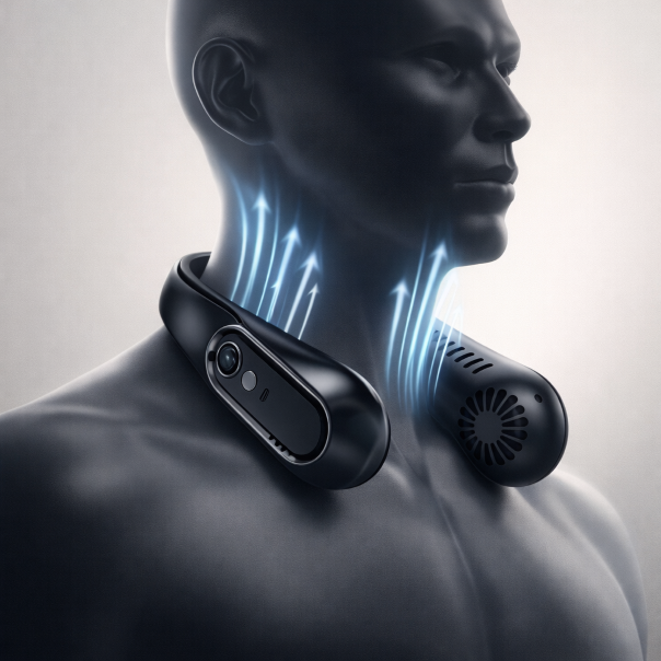 Experience elevated personal cooling with the Ventera Neck Fan designed for refined comfort and advanced performance. Dual-core airflow technology delivers smooth, 360° circulating wind with instant activation, providing noticeable cooling in just one second while maintaining whisper-quiet operation in a sleek, lightweight form.