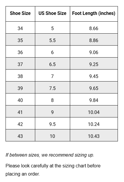 Our fashion sandals are designed to fit true to size. Please see the sizing chart carefully before placing an order.